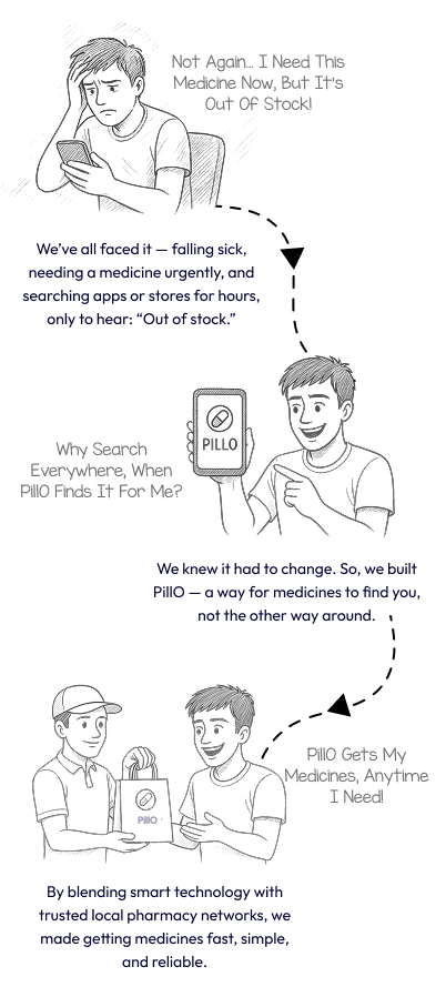 From daily prescriptions to urgent late-night needs, PillO is here to keep your health on track. Your health can't wait — and neither should your medicines.